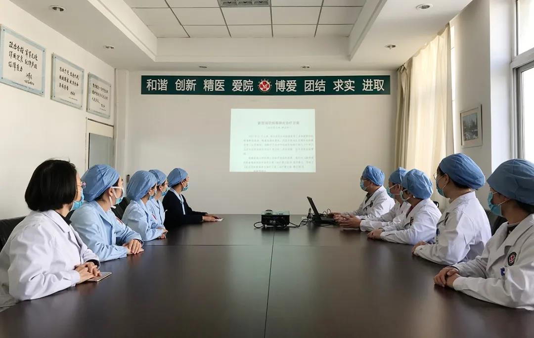 抗擊新冠病毒肺炎疫情的戰役打響后,血液科在醫院統一領導下積極投身疫情阻擊戰,并抽派多名醫護人員馳援湖北抗疫一線和發熱門診輪值出診。科室結合血液病患者免疫低下易感染的特點和病區實際情況,制定科學有效的防控工作方案,成立了由王吉剛主任任組長、張海婷護士長任副組長的血液科新冠病毒肺炎防控小組,責任分工、各司其職。王吉剛主任在特殊防護方面經驗豐富,他結合《新型冠狀病毒肺炎診療方案》及自身體會為全科工作人員進行專題授課。張海婷護士長曾參加過抗擊埃博拉病毒系統培訓、援外維和及汶川大地震救援等多項重大任務,她對全科人員進行防護示教及防護知識考核,大大提高了全科人員的防控意識和防控能力。